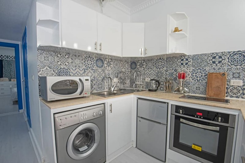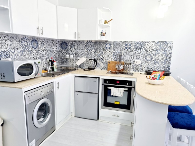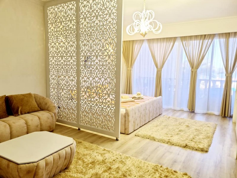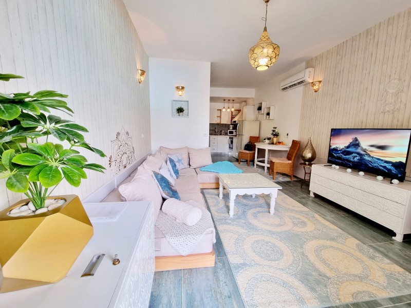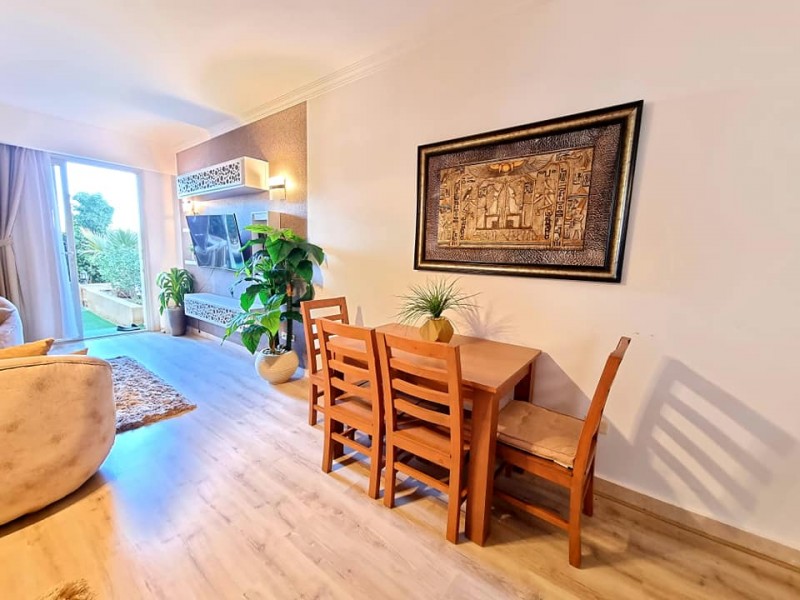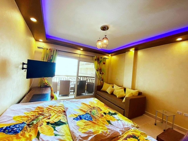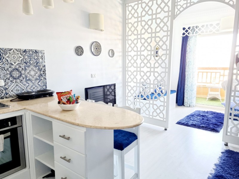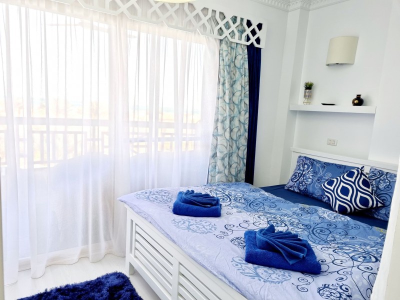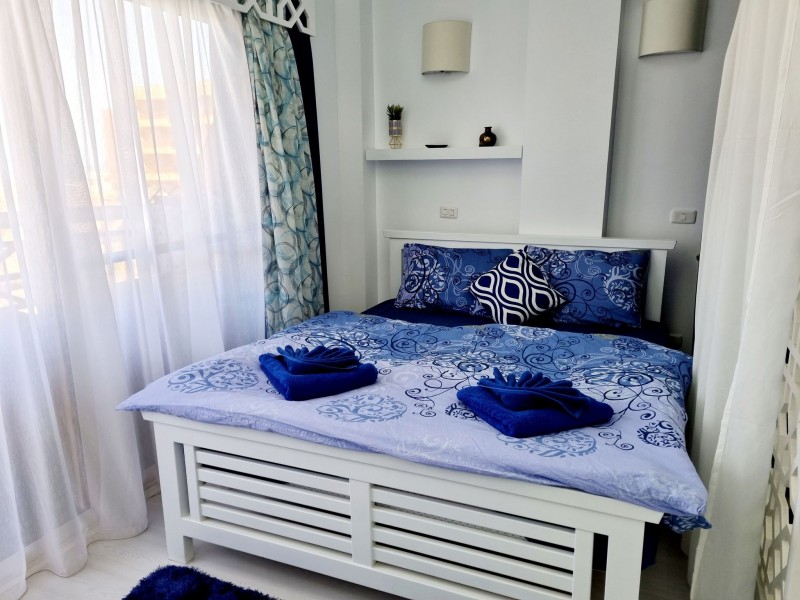 Súkromný 2-4-lôžkový apartmán (50m2) s balkónem a výhľadom na more a bazény. Vybavenie: kuchynka so šporákom, el. rúrou, chladnička s mrazničkou, toustovačom, varnou kanvicou a riadmi, umývačka, filter na vodu (nemusíte kupovať balenú vodu), kúpeľňa, práčka, WC, klimatizácia, fén, trezor, TV. WIFI za poplatok. Zdarma vstup do bazénov, na pláž, plážové lehátka. Obchody a lekáreň neďaleko. Reštaurácia na pláži. Celá špecifikácia.