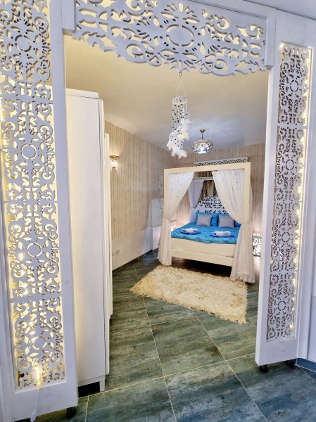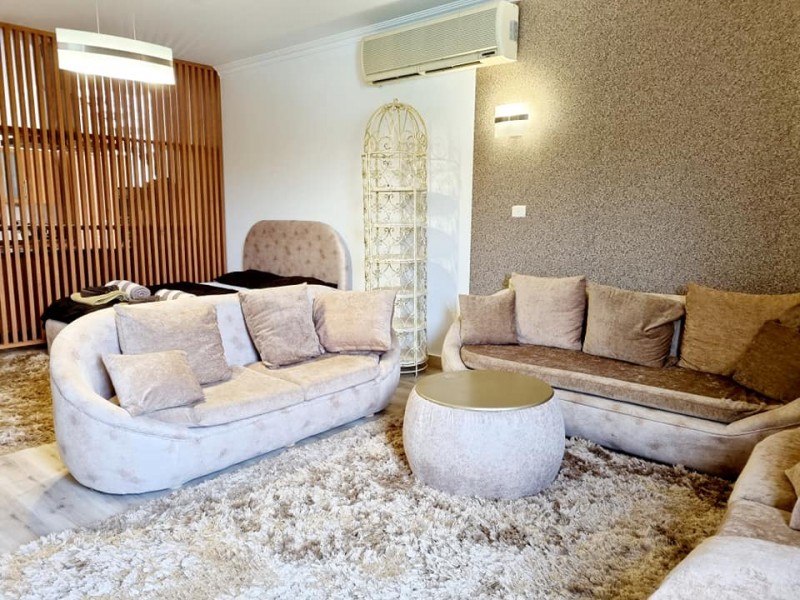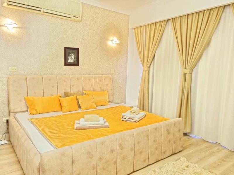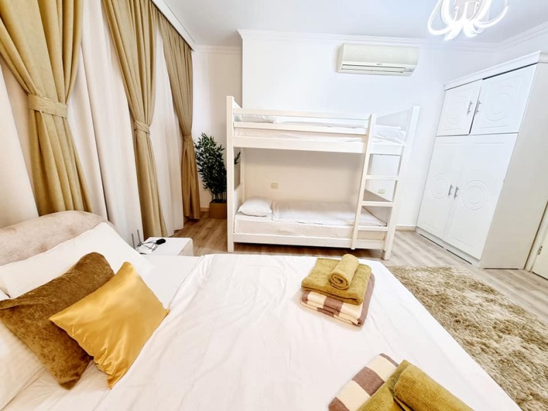 Súkromný 8-lôžkový (4+4) dvojposchodový apartmán - buď spoločně alebo rozdeliť na poschodia so samostatnými vchodmi s terasou a balkónom s výhľadmi na more a bazén. Vybavenie: kuchynka so šporákom, el. i mikro rúrou, umývačkou riadu, chladničkou s mraziakom, filtrom na vodu a riadmi, kúpeľňa, WC, klimatizácia, TV. WIFI za poplatok. Zdarma vstup do bazénov, na pláž, plážové lehátka. Obchody a lekáreň neďaleko. Reštaurácia na pláži. Celá špecifikácia.