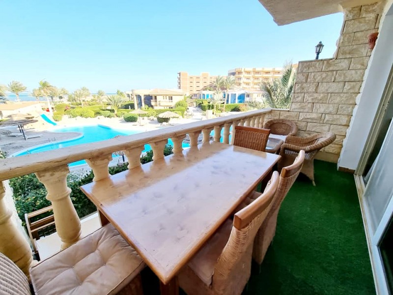 Súkromný 2-4-lôžkový apartmán (55m2) so súkromnou terasou s výhľadom na more a bazény. Vybavenie: kuchynka so šporákom, el. i mikro rúrou, grilom, chladničkou s mrazničkou a riadmi, filter na vodu, kupľňa, WC, klimatizácia, TV. WIFI za poplatok. Zdarma vstup do bazénov, na pláž, plážové lehátka. Obchody a lekáreň neďaleko. Reštaurácia na pláži. Celá špecifikácia.