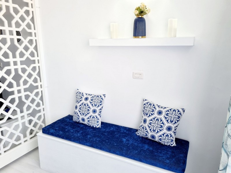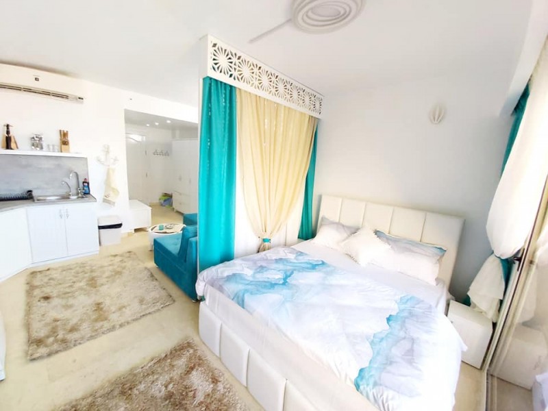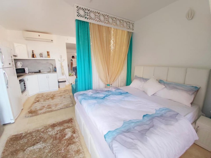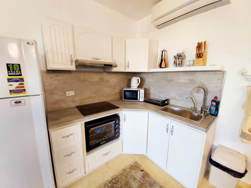 Súkromný 2-4-lôžkový apartmán (70m2) so súkromnou terasou s výhľadom na more a bazény.Vybavenie: kuchynka so šporákom, el. i mikro rúrou, grilom, chladničkou s mrazničkou a riadmi, filter na vodu, kupľňa, WC, klimatizácia, TV. WIFI za poplatok. Zdarma vstup do bazénov, na pláž, plážové lehátka. Obchody a lekáreň neďaleko. Reštaurácia na pláži.